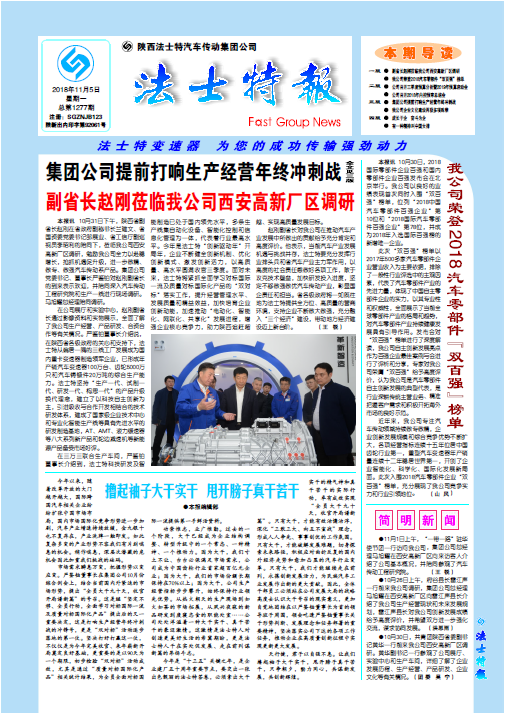 ●11月1日上午,“一带一路”驻华使节团一行访问我公司,集团公司总经理马旭耀在西安高新厂区向来访客人介绍了公司基本概况,并陪同参观了汽车传动工程研究院。●10月2